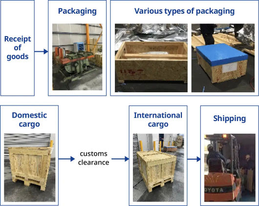 We also provide distribution processing services such as export packing to meet customer needs between receiving and shipping.